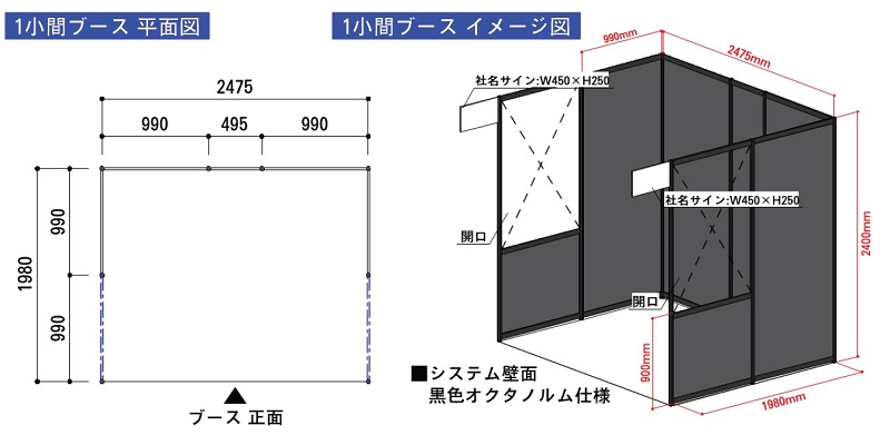 各ブース内に下記内容をご用意していますので、ご出展企業様にて、パネル、サイン等の掲示作業をお願いいたします。