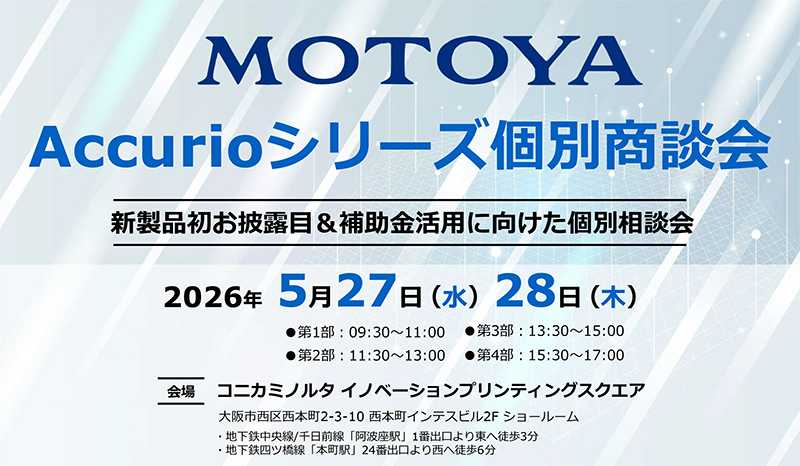 さて、「顧客と共に栄える」を社是として、創業104周年を迎えたモトヤは、この度、コニカミノルタジャパン様との共催で「MOTOYA Accurioシリーズ個別商談会」を、下記の要領で開催させて頂く運びとなりました。