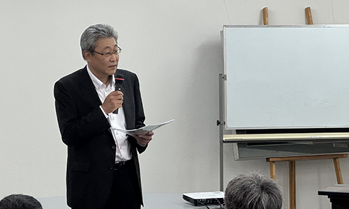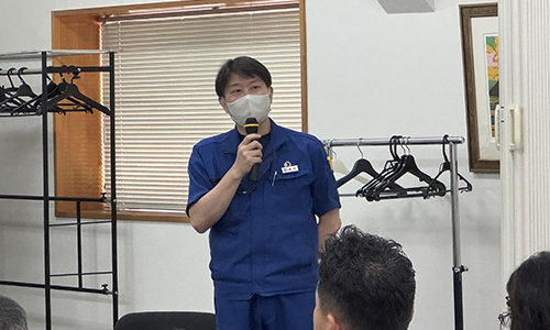 今回増設された「高積紙揃機 ミューパイルジョガー mini」の製造元であり、世界初の反転高積紙揃機の開発メーカーである株式会社ミューテック 常務取締役 増田様にご挨拶いただきました。