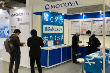 モトヤブースでは、高い可読性・視認性・判読性を実現するJIS X0213対応ユニバーサルデザイン(UD)フォント、低容量で機器組込みに最適なビットマップフォント、デジタル放送の最新規格ARIB STD-B62対応フォントなどの各種の組込みフォントの紹介を行いました。