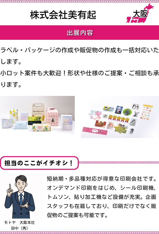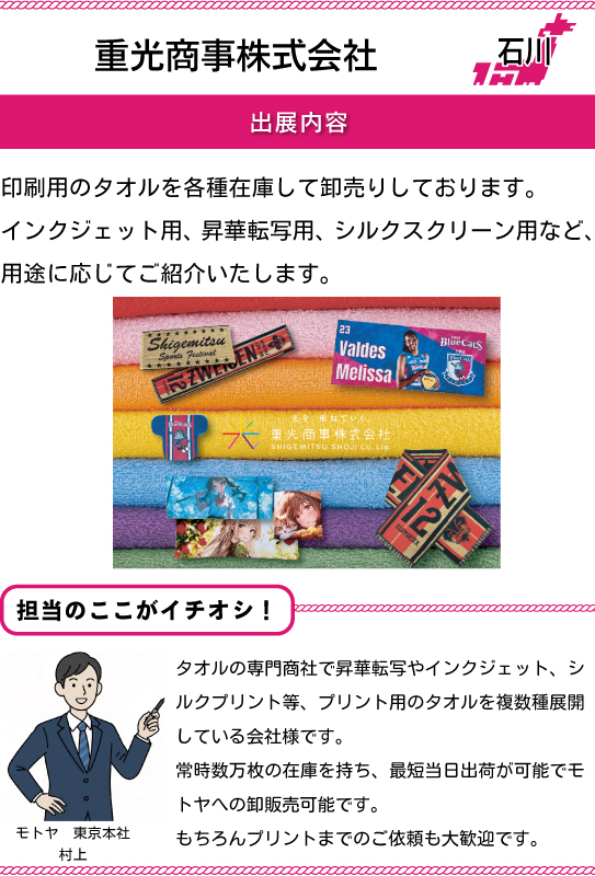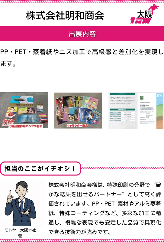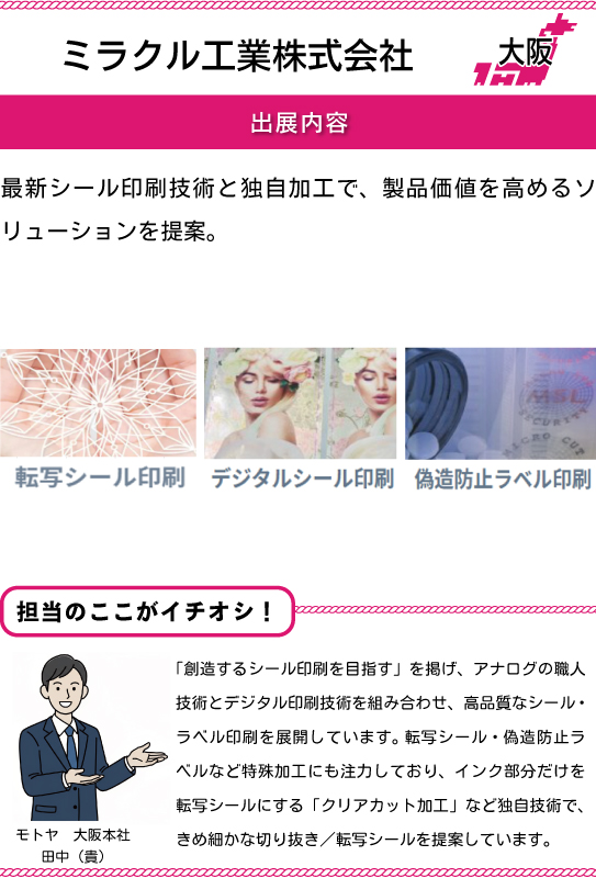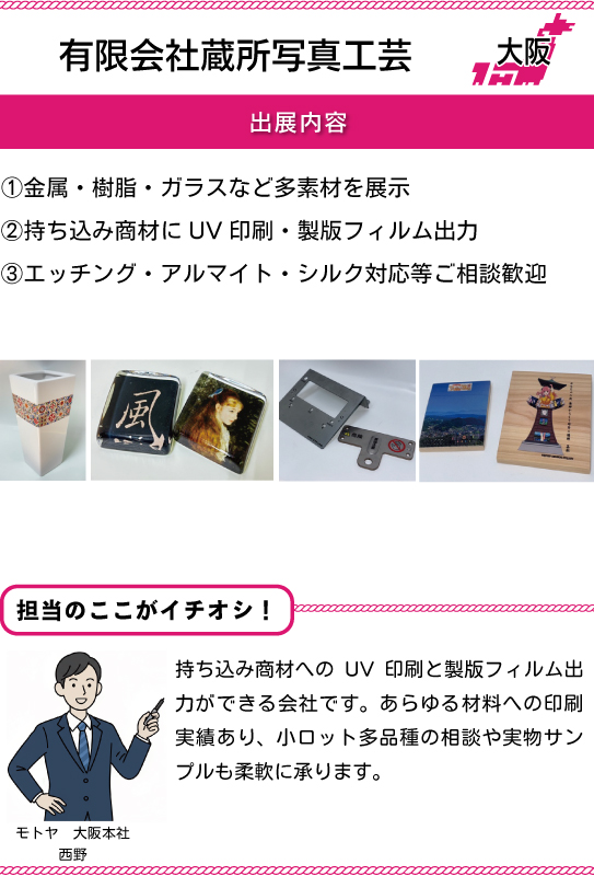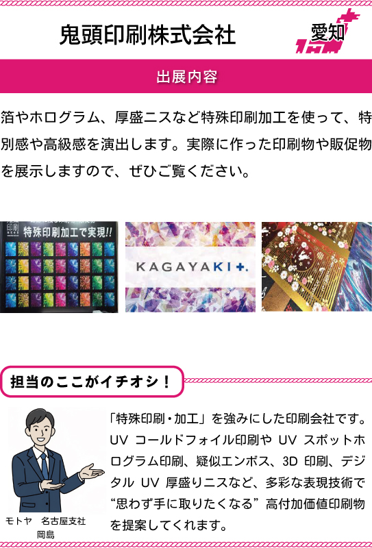 こちらでは、開催に先駆けて「コラボレーションゾーン」ご出展企業様の「見どころ」とモトヤ担当者だからこそ知っている「イチオシポイント」をご紹介いたします。