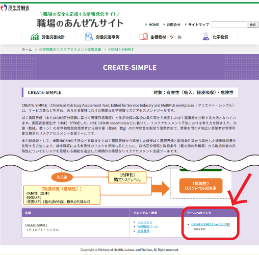 前回は化学物質の「濃度基準値設定物質」で、作業環境測定値がなくても、簡易的にばく露濃度を推定できる『クリエイト・シンプル』をご紹介しました。このツールは厚生労働省:職場のあんぜんサイトに無料で公開されており、今回はその実施方法を取り上げます。
